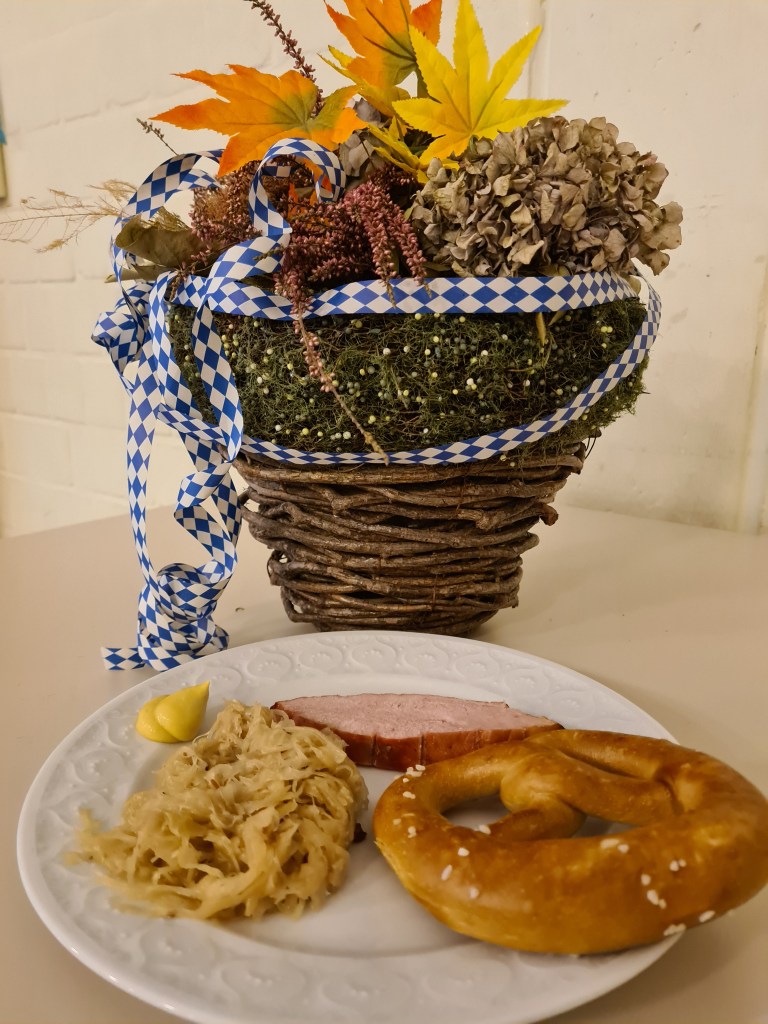 Es durfte gelacht und geschunkelt werden. Gutes Essen durfte natürlich bei unserem Oktoberfest auch nicht fehlen. Statt zu Singen, hat uns Olga mit ihrem Akkordeon fröhlich unterhalten.